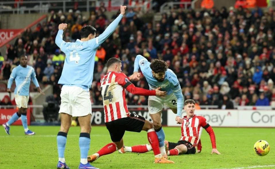 ย้อนกลับไปในการพบกันครั้งล่าสุดระหว่างทั้งสองทีม แมนเชสเตอร์ ซิตี้ เป็นฝ่ายครองเกมได้อย่างเด็ดขาด พร้อมคว้าชัยชนะอย่างขาดลอย 3-0 ในบ้านของตัวเอง อย่างไรก็ตาม ในฤดูกาลนี้ที่สนามสเตเดียม ออฟ ไลท์ ซันเดอร์แลนด์ได้แสดงให้เห็นถึงความแข็งแกร่งอย่างน่าประทับใจ โดยยังไม่แพ้ใครจนถึงขณะนี้ ในช่วงต้นเกม ปีกของแมนเชสเตอร์ ซิตี้ แบร์นาร์โด ซิลวา ยิงประตูได้ในนาทีที่ 6 แต่ถูกตัดสินให้เป็นลูกล้ำหน้า หลังจากนั้น ผู้รักษาประตูของทีมเยือน จานลุยจิ ดอนนารุมมา โชว์ฟอร์มเซฟอย่างยอดเยี่ยมหลายครั้ง ช่วยป้องกันประตูจากโอกาสทำประตูของแมนเชสเตอร์ ซิตี้ ที่ถาโถมเข้ามาอย่างต่อเนื่องเมื่อถึงครึ่งเวลา, คะแนนยังคงเสมอกันอยู่ที่ 0-0.
