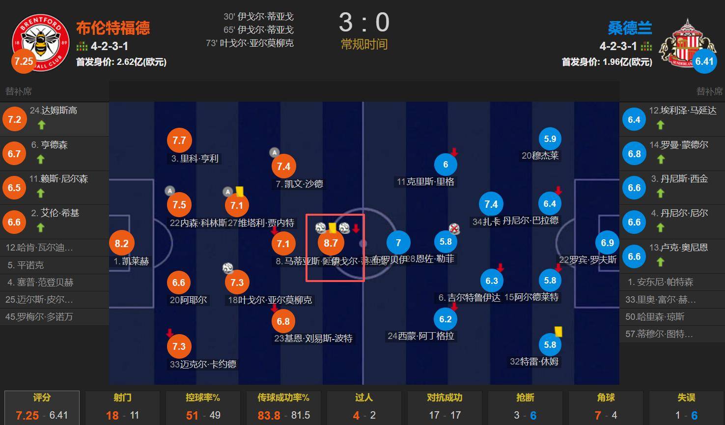 พรีเมียร์ลีก แมตช์เดย์ 21: เบรนท์ฟอร์ด 3-0 ซันเดอร์แลนด์. อิกอร์ ธิอาโก้ เริ่มต้นการแข่งขันและทำประตูได้สองครั้ง ได้รับคะแนนสูงสุดในเกม 8.7.