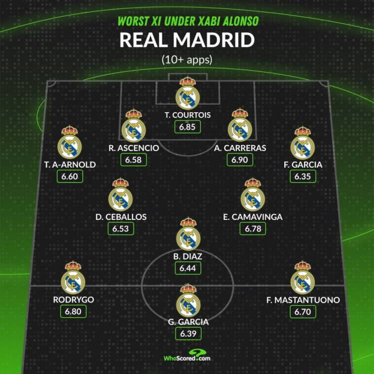 ผู้เล่นที่ประเมินผลงานต่ำสุดของเรอัล มาดริดในยุคของอลอนโซ: ผู้เล่นที่ลงสนามอย่างน้อย 10 นัด