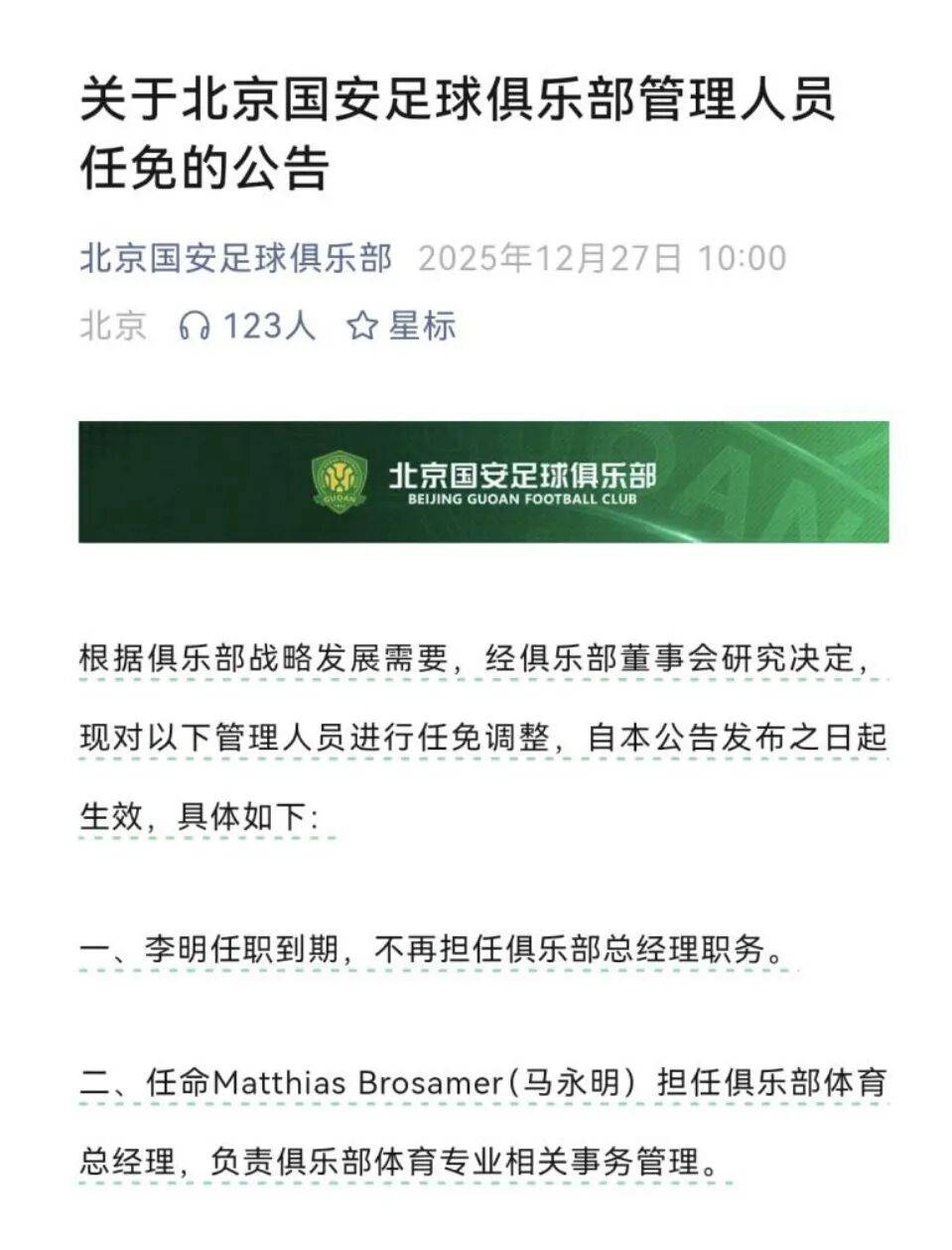 ขอแสดงความยินดีกับศิษย์เก่า BLCU หม่า หยงหมิง ในโอกาสได้รับการแต่งตั้งเป็นผู้อำนวยการฝ่ายกีฬาของสโมสรฟุตบอลปักกิ่ง กั๋วอัน _ผู้เชี่ยวชาญ_จีน_มืออาชีพ_