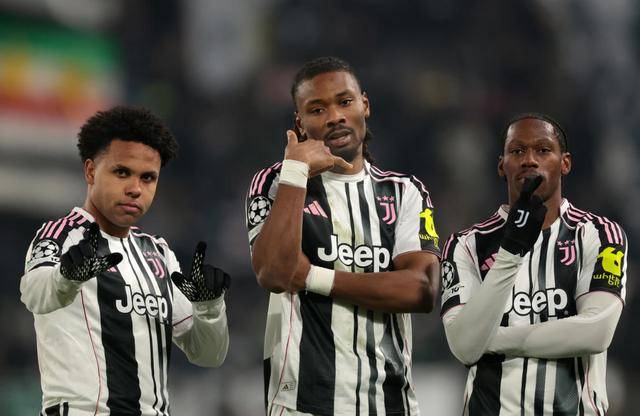 ยูเวนตุสเอาชนะเบนฟิก้า 2-0 ในรอบนี้ของการแข่งขัน ภาพคือมาร์คัส Thuram (กลาง) กำลังฉลองประตูกับเพื่อนร่วมทีม แหล่งที่มาของภาพ: สำนักข่าวซินหัว