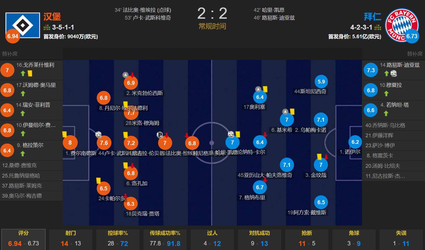 นักเตะบาเยิร์นที่ดูเหนื่อยล้าจากการแข่งขันหลายรายการ ประกอบกับผู้ตัดสินที่ดูเหมือนจะมี "ภารกิจ" ของตัวเอง ส่งผลให้ยักษ์ใหญ่แห่งเหนือและใต้เสมอกัน 2-2 แฟนบอลแซวว่ายักษ์ใหญ่แห่งเหนือเพิ่งจะให้อภัยบุนเดสลีกาสำหรับการเลื่อนชั้นของพวกเขา และสมาคมฟุตบอลเยอรมันจะไม่ยอมให้ฮัมบูร์กกลับสู่ดิวิชั่นสองในการแข่งขันนี้ บาเยิร์นครองบอลได้ถึง 72% แม้จะเล่นเป็นทีมเยือน โดยยิงทั้งหมด 13 ครั้ง ซึ่งน้อยกว่าฮัมบูร์กที่พยายามยิง 14 ครั้ง บาเยิร์นยิงตรงกรอบ 7 ครั้ง ขณะที่ฮัมบูร์กทำได้ 4 ครั้ง บาเยิร์นไม่ชนะติดต่อกันสองนัด ทำให้พวกเขาเสียไป 5 คะแนน แม้จะมีผลกระทบเพียงเล็กน้อยต่อการลุ้นแชมป์บุนเดสลีกา