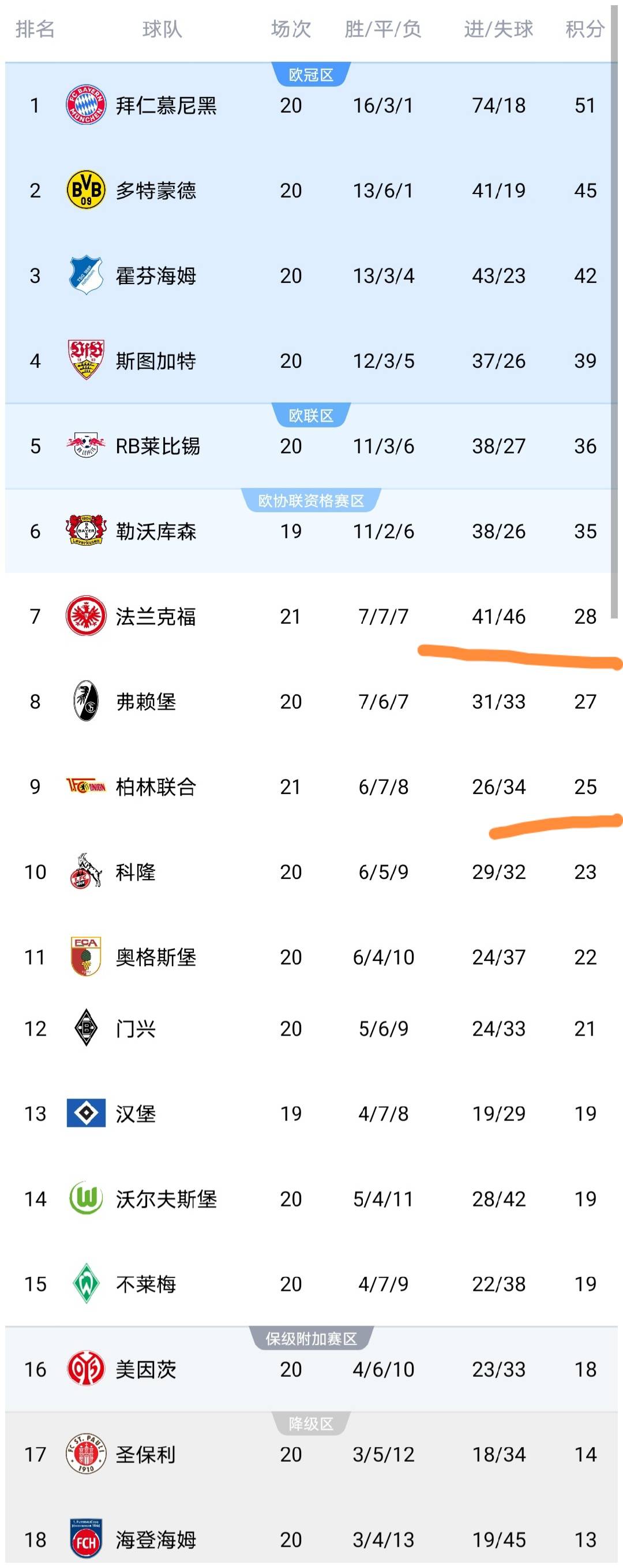 หลังจากการเสมอของพวกเขา คะแนนของไอน์ทรัค แฟรงค์เฟิร์ตเพิ่มขึ้นเป็นเพียง 28 คะแนน ทำให้พวกเขาตามหลังอันดับที่หกอย่างไบเออร์ เลเวอร์คูเซ่นอยู่ 7 คะแนนการไล่ล่าตำแหน่งในยุโรปของแฟรงค์เฟิร์ตได้กลายเป็นเรื่องที่ท้าทายมากขึ้นอย่างมีนัยสำคัญ ทั้งนี้ แฟรงค์เฟิร์ตได้ลงเล่นมากกว่าเลเวอร์คูเซ่นถึงสองนัด ขณะเดียวกัน หลังจากที่ยูเนียน เบอร์ลินเสมอกับแฟรงค์เฟิร์ต พวกเขาก็ได้ไต่ขึ้นมาอยู่ที่ 25 คะแนน ตามหลังแฟรงค์เฟิร์ตที่อยู่ในอันดับที่เจ็ดอยู่สามคะแนน และตามหลังเลเวอร์คูเซ่นที่อยู่ในอันดับที่หกอยู่สิบคะแนนในส่วนอื่น ๆ ของสี่อันดับแรก สตุ๊ตการ์ทครองอันดับสี่ โดยมีคะแนนนำไลป์ซิกอยู่สามแต้ม โบรุสเซีย ดอร์ทมุนด์ตามหลังบาเยิร์น มิวนิคอยู่หกแต้ม โดยดอร์ทมุนด์ยังคงมีความหวังในการคว้าแชมป์