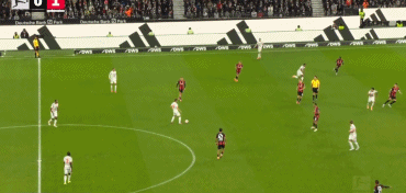 แฟรงค์เฟิร์ตไม่ได้ไร้โอกาสโดยสิ้นเชิงในนาทีที่ 14 ริตสึ โดอัน ทำลายแนวรับทางฝั่งขวา ก่อนจะจ่ายบอลเข้ากลางหน้าประตูให้ บอร์ฆา มาโยรัล ยิงจากขอบเขตโทษ อย่างไรก็ตาม VAR ตัดสินว่าโดอันใช้มือเล่นบอลขณะควบคุมบอล ทำให้ประตูถูกยกเลิก ผู้จัดการทีมไอน์ทรัค แฟรงค์เฟิร์ต ท็อปโมลเลอร์ แสดงความผิดหวังหลังจบเกม: "การตัดสินของ VAR เปลี่ยนแปลงทิศทางของเกม หากสกอร์เป็น 1-2 การแข่งขันทั้งหมดคงจะดำเนินไปอย่างแตกต่าง"