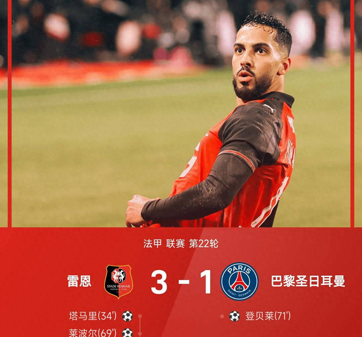 แรนส์สร้างความตกตะลึงให้กับปารีส แซงต์-แชร์กแมง ด้วยชัยชนะ 3-1
