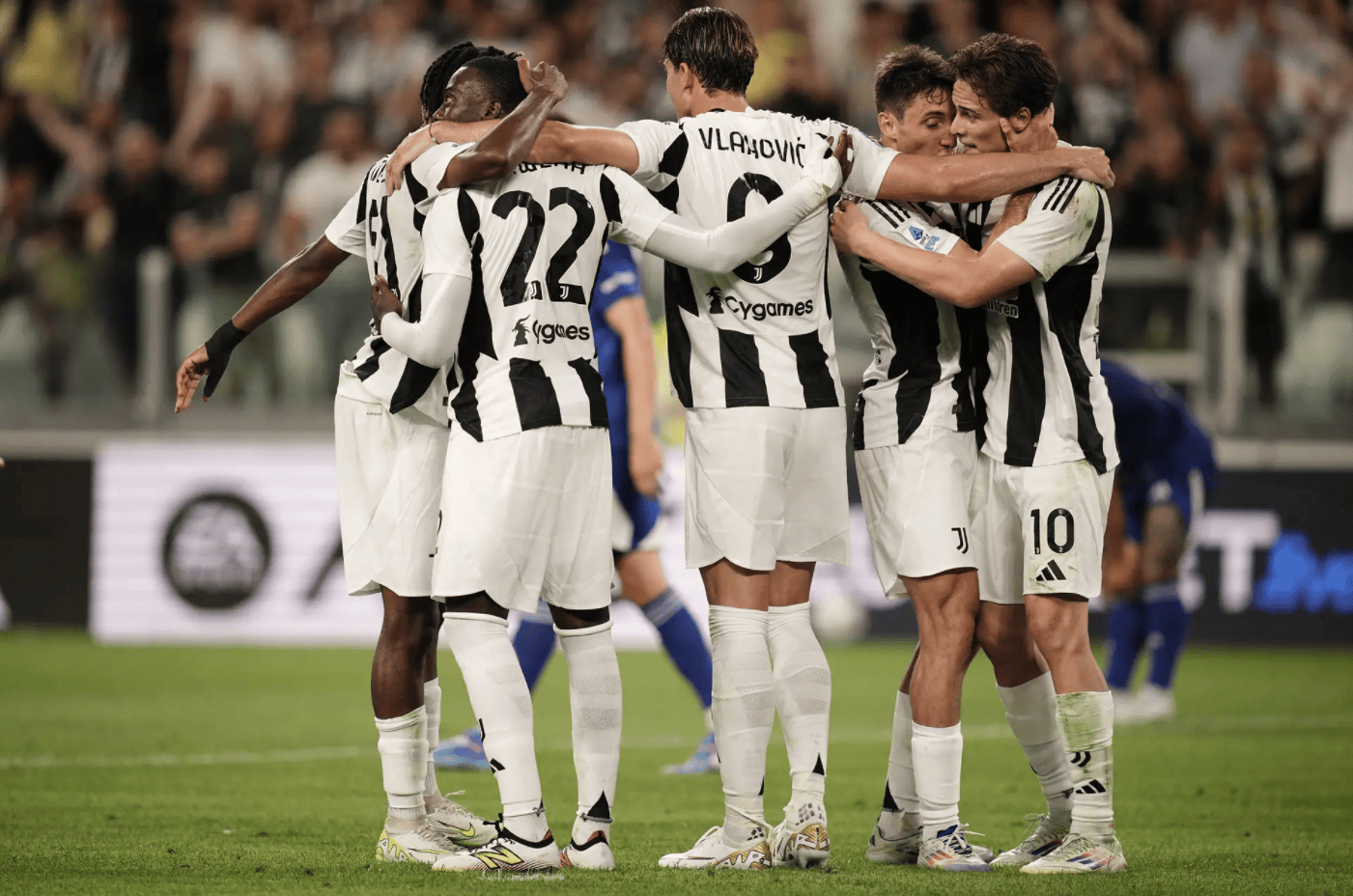 ในนาทีที่ 10 โคโมเปิดสกอร์ขึ้นนำ! ดูวิคัสจ่ายบอลเฉียงจากกลางสนามไปให้ โวจโวดิช ทางริมเส้นฝั่งขวา หลังจากเลี้ยงบอลหลบกองหลังในกรอบเขตโทษ โวจโวดิชยิงบอลที่ดิ เกรกอริโอ ปัดออกมาได้แต่บอลไหลข้ามเส้นเข้าประตูไป ยูเวนตุส 0-1 โคโมในนาทีที่ 60 โคโมหนีห่างเป็นสองประตู! จากจังหวะสวนกลับ วอยโวดานจ่ายบอลทะลุช่องเข้าเขตโทษจากฝั่งขวา ดาคูเนียตัดบอลย้อนเข้ากลางให้คาเซเรโร่ยิงโล่งเข้าไปตุงตาข่าย ยูเวนตุส 0-2 โคโม เบียงโคเนรี่ยังคงไร้ชัยในสามนัดลีกติดต่อกัน ขณะนี้ตามหลังกลุ่มท็อปโฟร์อยู่หนึ่งแต้ม