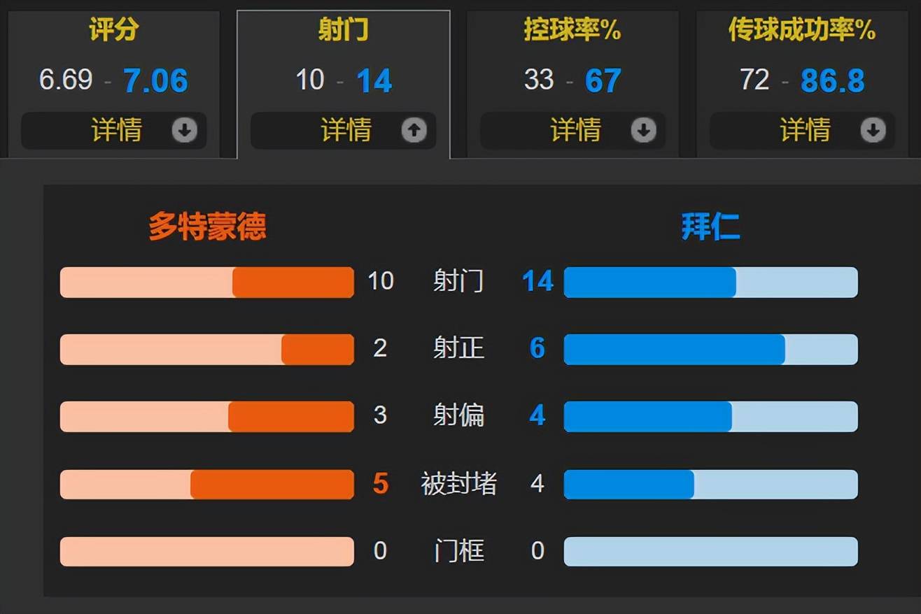ตลอดการแข่งขัน บาเยิร์น มิวนิค ครองบอล 67% ยิงทั้งหมด 14 ครั้ง โดยเข้ากรอบ 6 ครั้ง; โบรุสเซีย ดอร์ทมุนด์ ยิงทั้งหมด 10 ครั้ง โดยเข้ากรอบ 2 ครั้ง