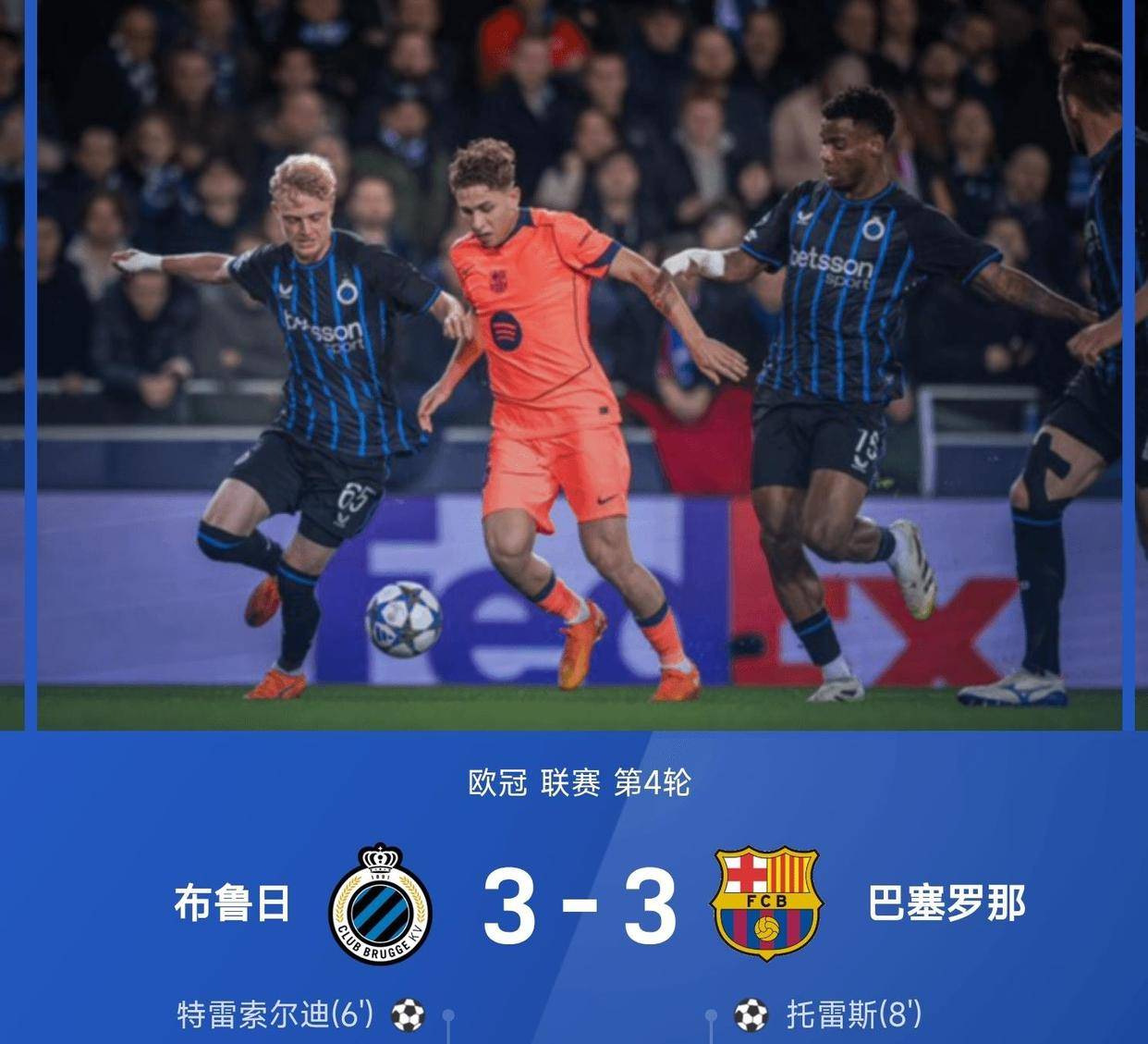 บาร์เซโลน่าถูกคลับบรูจจ์ถล่มอย่างหนัก เกือบถูกเขี่ยตกรอบถึงสามครั้งแต่สามารถกลับมาได้ทุกรอบ ก่อนจะเสมอ 3-3 อย่างหวุดหวิดด้วยประตูตัวเอง