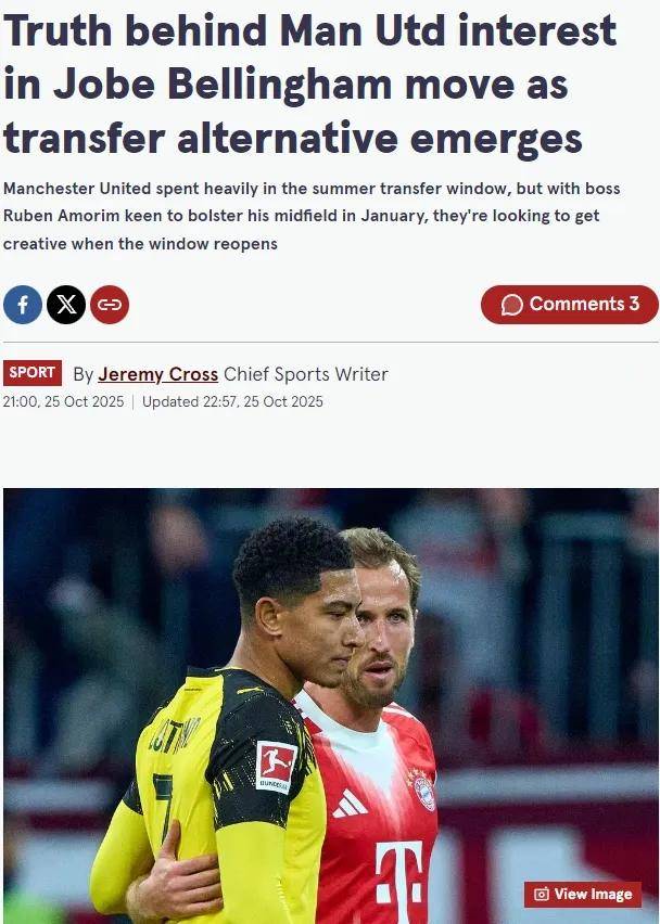 ตามรายงานของ The Mirror, แมนเชสเตอร์ ยูไนเต็ด ได้ระบุตัว Jude Bellingham วัย 20 ปี เป็นเป้าหมายในการย้ายทีม และวางแผนที่จะยื่นข้อเสนอเพื่อคว้าตัวเขาในเดือนมกราคมปีหน้าเบลลิงแฮมได้เข้าร่วมทีมโบรุสเซีย ดอร์ทมุนด์ในช่วงซัมเมอร์นี้ แต่ลงเล่นในบุนเดสลีกาเพียง 209 นาทีเท่านั้น และยังไม่สามารถทำประตูหรือแอสซิสต์ได้เลย นอกจากนี้ ความสัมพันธ์ระหว่างไมเคิล ซอร์ค ผู้อำนวยการของดอร์ทมุนด์กับมาร์ค บิดาของเบลลิงแฮม ก็เสื่อมถอยลง ซึ่งยิ่งทำให้สถานการณ์ของดาวรุ่งรายนี้ซับซ้อนมากขึ้น