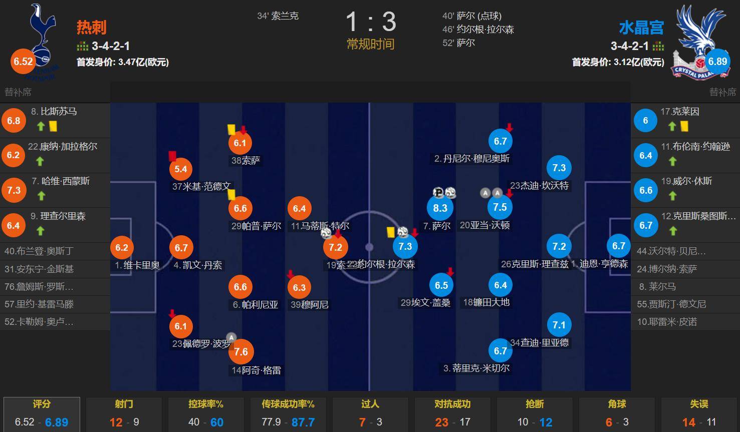 ในครึ่งแรก ประตูของ Salle ถูกทำลาย Solanck ทำลายการหยุดชะงักในสนาม แพ็คเกจ Red Dot ของ Van Der Fen, Tottenham 10 ในวันที่ 11, Sal Point ยิงเพื่อทำให้คะแนนเท่ากัน ในเวลาทดเวลา วอลตันช่วย Larson ให้ขยายคะแนน จากนั้น Wharton ก็ช่วย SAR ให้จบสองเสียง และท็อตแนมก็ล้ม 1-3 ในครึ่งเกม