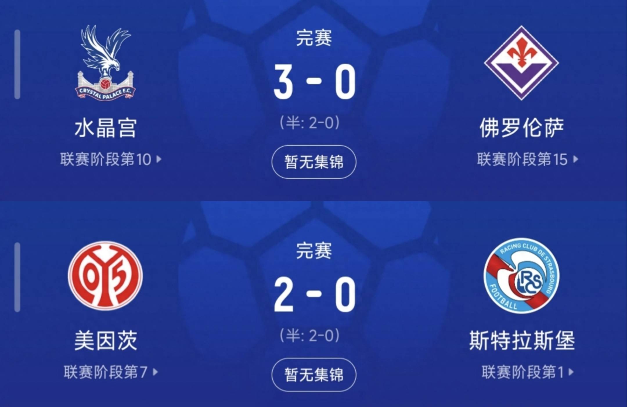 รอบต่อไปเริ่มเวลา 03.00 น. วันที่ 17 เมษายน คริสตัล พาเลซ ไปฟลอเรนซ์ และไมนซ์ท้าทายสตราสบูร์ก แต่บอกตามตรงว่าข้อดีของ 3-0 และ 2-0 นั้นใหญ่ไปหน่อย เว้นแต่จะมีปาฏิหาริย์ ทั้งสองทีมจะเข้าสู่รอบรองชนะเลิศ และโดยพื้นฐานแล้วสี่อันดับแรกนั้นใกล้จะน่าทึ่งแล้ว สิ่งที่ฉันตั้งตารอตอนนี้คือ Crystal Palace และ Mainz จะพบกันในรอบรองชนะเลิศแบบไหน? ท้ายที่สุดแล้ว คนหนึ่งคือ "มังกร" ของพรีเมียร์ลีก และอีกตัวคือ "ราชาแห่งม้ามืด" ในบุนเดสลีกา ดังนั้นเกมจึงต้องน่าสนใจกว่านี้!
