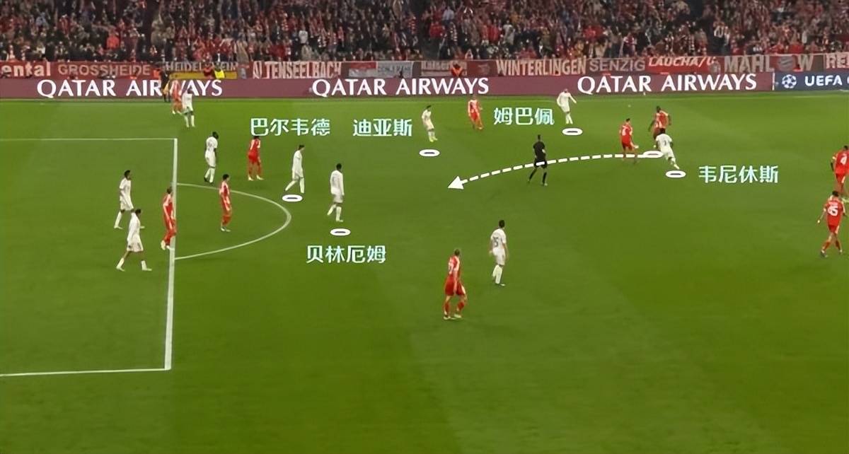 ตำแหน่งบาเยิร์นสูงเกินไปและการโต้กลับของเรอัล มาดริด เฉียบคมมาก ในขั้นตอนนี้ เรอัล มาดริด มีโอกาสที่จะทำลายบาเยิร์น แต่ตัวเลือกเกมรุกหลายรายการของ Mbappe นั้นไม่ดี และโอกาสก็หลุดออกไป