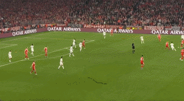 แม้ว่าเรอัล มาดริดจะเป็นทีมลาลีกา แต่การเผชิญหน้าของพวกเขาก็ยอดเยี่ยมเสมอมา ในการเผชิญหน้ากับบาเยิร์นที่คุกคามเรอัลมาดริดได้เลิกใช้พลังการครอบครองลูกบอลและพวกเขาได้ตีโต้กลับอย่างเฉียบขาด ดังนั้น บาเยิร์นจึงผ่านและประสบความสำเร็จในสามเขตของพื้นที่โจมตีจึงสูงกว่าเรอัล มาดริด แต่เรอัล มาดริดสามารถโจมตีพื้นที่หลังของบาเยิร์นได้อย่างมีประสิทธิภาพมากขึ้นผ่านการโต้กลับ
