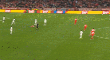น่าเสียดายที่บอลไปที่แดนหน้าและให้บอลไปให้เอ็มบัปเป้ เขาไม่มีวิธีการรุกที่ดีทางด้านขวา แต่กลับชะลอการโต้กลับ อย่างไรก็ตาม ทีมของเรอัล มาดริดใช้การวิ่งและการเผชิญหน้าของเบลลิงแฮมเพื่อบุกผ่านตำแหน่งสูงสุดของบาเยิร์นหลายครั้ง และมันก็กลายเป็นจุดเริ่มต้นของวิกฤตการณ์บาเยิร์นที่ตามมาด้วย