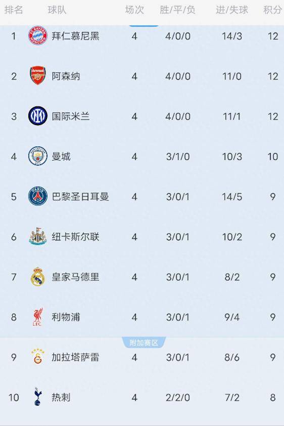 ตารางคะแนนยูฟ่าแชมเปียนส์ลีกปัจจุบันเผยให้เห็นการแข่งขันที่เข้มข้นในหลายกลุ่ม โดยผลการแข่งขันรอบคัดเลือกยังคงไม่แน่นอน ในกลุ่ม A อาร์เซนอลนำอย่างสบายด้วย 12 คะแนนจากชัยชนะ 4 นัดติดต่อกัน ขณะที่ปารีส แซงต์-แชร์กแมง อยู่อันดับสองด้วย 9 คะแนน กลุ่ม B มีเรอัล มาดริดและลิเวอร์พูลเสมอกันที่ 9 คะแนนในอันดับสูงสุด บาเยิร์น มิวนิค ครองกลุ่ม C ด้วยสถิติไร้พ่าย 4 นัดและ 12 คะแนนอินเตอร์ มิลาน อยู่ในอันดับสองด้วยคะแนนเก้าคะแนน กลุ่ม D แสดงภาพที่ซับซ้อนที่สุด: แมนเชสเตอร์ ซิตี้ แม้จะมีสิบคะแนน แต่ก็ยังคงอยู่ในอันดับสี่ของกลุ่ม โดยมีโบรุสเซีย ดอร์ทมุนด์ นำด้วยคะแนนเจ็ดคะแนน ขณะที่เชลซีและคาราบัคมีคะแนนเท่ากันที่เจ็ดคะแนน ที่น่าสังเกตคือ ห้าในหกสโมสรจากพรีเมียร์ลีกที่แข่งขันอยู่ในอันดับท็อปเท็น สะท้อนให้เห็นถึงผลงานโดยรวมที่แข็งแกร่ง