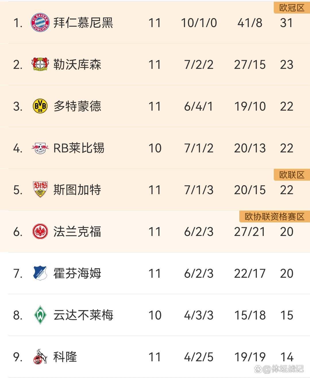 หลังจากการแข่งขันที่ดุเดือดในรอบที่สิบเอ็ด อันดับในบุนเดสลีกาได้มีการเปลี่ยนแปลงอีกครั้ง สำหรับการจัดอันดับล่าสุดและคะแนนสะสม กรุณาดูตารางคะแนนลีกที่อัปเดตอย่างต่อเนื่อง