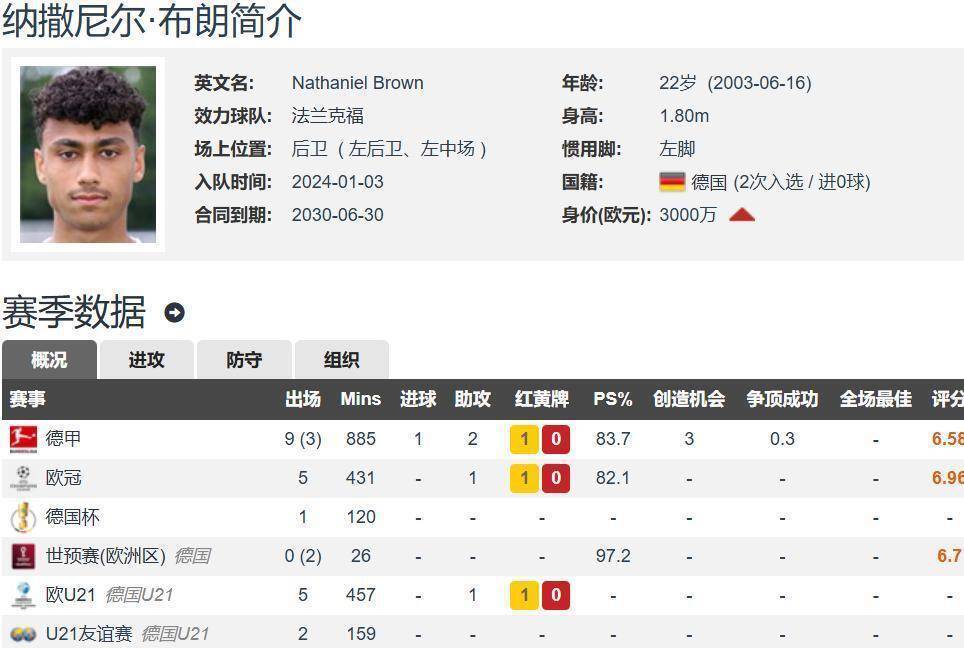 70 ล้านยูโร! บราวน์ แบ็คซ้ายวัย 22 ปีของแฟรงค์เฟิร์ต นักเตะทีมชาติเยอรมนีคนล่าสุด ได้รับความสนใจจากเรอัล มาดริด, บาร์เซโลนา และแมนเชสเตอร์ ยูไนเต็ด