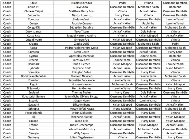 เมื่อวันที่ 17 ธันวาคม เวลาปักกิ่ง พิธีมอบรางวัล FIFA Awards ประจำปี 2025 ได้สิ้นสุดลง โดยกองหน้าชาวฝรั่งเศส อูสมาน เดมเบเล่ ได้รับรางวัลนักเตะชายยอดเยี่ยมแห่งปีของ FIFA หลังจากนั้น เว็บไซต์อย่างเป็นทางการของ FIFA ได้เผยแพร่ผลการโหวตโดยละเอียด