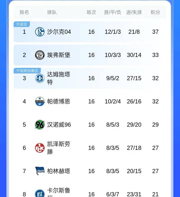 ชาลเก้ 04 ปัจจุบันครองตำแหน่งจ่าฝูงของตารางบุนเดสลีกา 2 ด้วยคะแนน 37 คะแนน โดยมีโอกาสแข็งแกร่งที่จะกลับสู่บุนเดสลีกาในสิ้นสุดฤดูกาลนี้