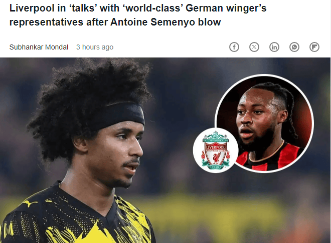 ลิเวอร์พูลเร่งคว้าตัวแทนเซเมโยอย่างรวดเร็ว: ยื่นข้อเสนอ 60 ล้านปอนด์ขอซื้อปีกดอร์ทมุนด์ อเดโมลา อาร์เซนอล และแมนเชสเตอร์ ยูไนเต็ด