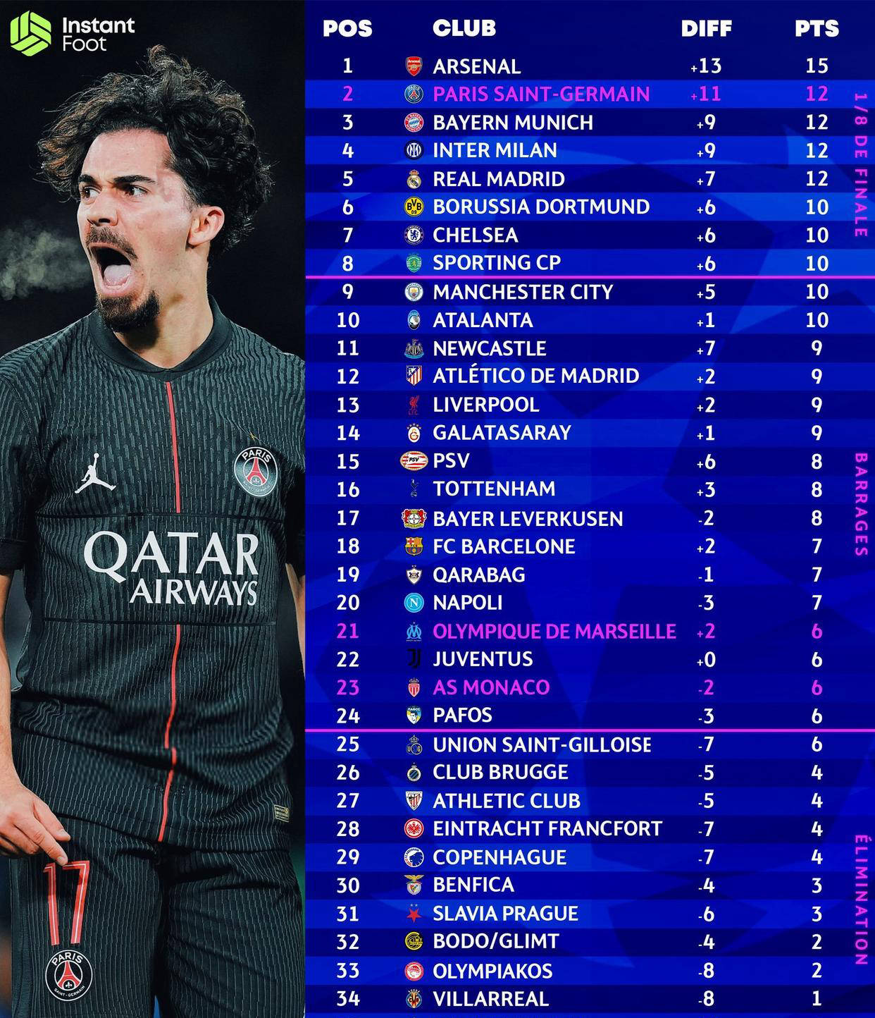 คีเลียน เอ็มบัปเป้ ทำประตูได้สี่ลูกเพื่อคว้าคะแนนเต็ม 10/10 ในฐานะผู้เล่นยอดเยี่ยมประจำการแข่งขัน พาเรอัล มาดริด พลิกกลับมาชนะโอลิมเปียกอสอย่างน่าทึ่ง 4-3 ผู้ช่วย: วินิซิอุส จูเนียร์ การแข่งขัน