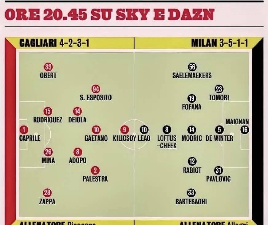 สื่อเซเรียอาคาดการณ์ผู้เล่นตัวจริงสำหรับมิลาน vs กาญารี: ระบบ 3-5-2 โดยมีเลเอาและชิคจับคู่กันในแดนหน้า_ฟิลิป ครุก_พูลิซิช_แมตช์