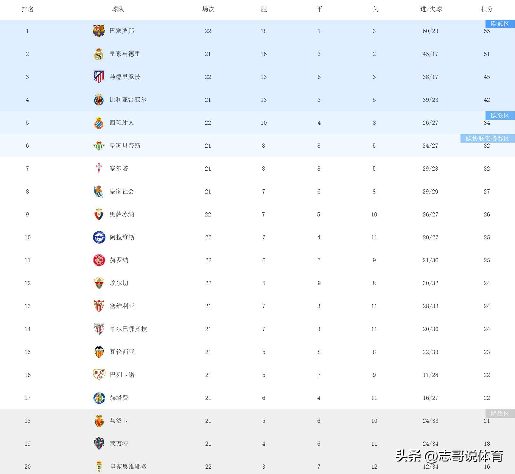 ในช่วงเช้าตรู่ของวันที่ 1 กุมภาพันธ์ ตามเวลาปักกิ่ง การแข่งขันสำคัญสองรายการในรอบที่ 22 ของลาลีกาได้สิ้นสุดลง:แอตเลติโก มาดริด เสมอกับเลบานเต้ 0-0 ขณะที่บาร์เซโลนาเอาชนะเอลเช 3-1 ตารางคะแนนลาลีกาล่าสุดได้รับการอัปเดตแล้ว ทำให้เรอัล มาดริดต้องเผชิญกับแรงกดดันอีกครั้ง บาร์เซโลนาซึ่งลงเล่นมากกว่าหนึ่งนัด มีคะแนนนำอยู่สี่แต้ม ขณะเดียวกัน แอตเลติโก มาดริดต้องพบกับความพ่ายแพ้สองนัดติดต่อกันในทุกรายการ โดยไม่สามารถเอาชนะเลบานเต้ที่อยู่อันดับสุดท้ายได้ ซึ่งเป็นผลการแข่งขันที่น่าประหลาดใจ