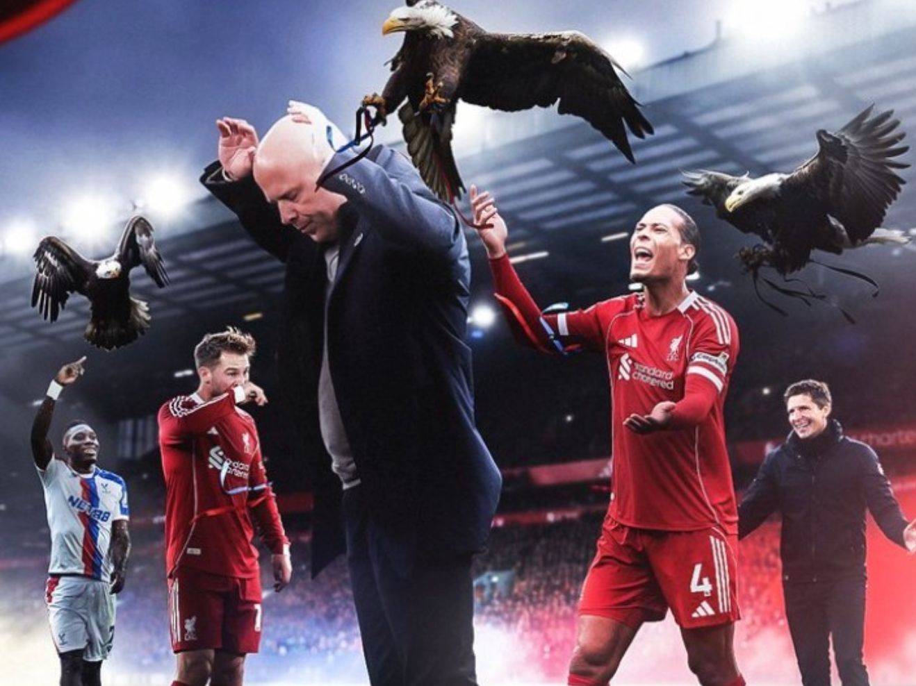 ลิเวอร์พูลประสบความพ่ายแพ้อย่างน่าอับอาย 0-3 ในบ้าน ในลีกภายในประเทศ ทีมหงส์แดงต้องทนกับการแพ้ติดต่อกันถึงห้าครั้ง ซึ่งนับว่าน่าอับอายอย่างยิ่ง ในเจ็ดนัดล่าสุด พวกเขาแพ้ถึงหกนัด ผู้จัดการทีม ปีเตอร์ สลอตต์ กำลังเผชิญกับวิกฤตการถูกไล่ออกในไม่ช้า โดยแฟนบอลคริสตัล พาเลซได้เย้ยหยันเขาจากอัฒจันทร์ว่า "พรุ่งนี้เช้าคุณจะตกงาน"