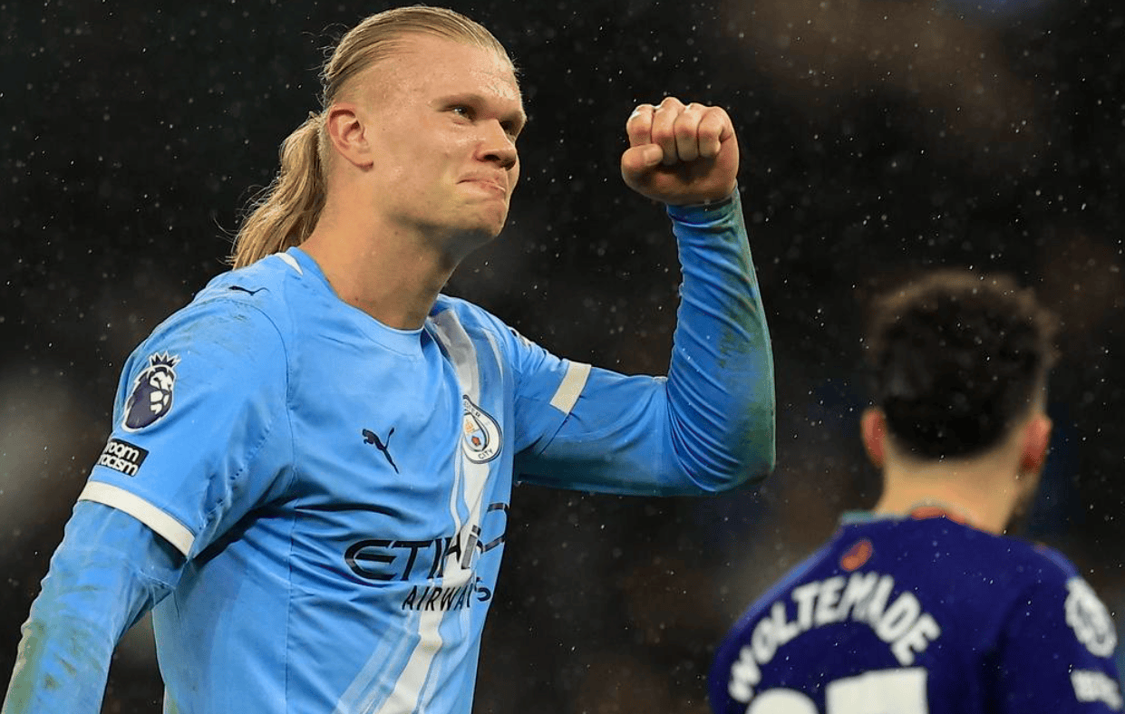 อีกรายหนึ่งที่เป็นนักเตะดาวเด่นซึ่งมีมูลค่าถึง 200 ล้านยูโรอย่าง เออร์ลิง ฮาแลนด์ ยังดูด้อยกว่าแฮร์รี่ เคนอยู่มากฮาแลนด์ทำประตูไปแล้ว 22 ประตูจากการลงเล่นในลีก 27 นัด เฉลี่ย 0.8 ประตูต่อเกม ปัจจุบันเขานำเป็นดาวซัลโวสูงสุดของพรีเมียร์ลีก โดยนำหน้าอิกอร์ ติอาโก้ ที่อยู่อันดับสองอยู่ 5 ประตู ทำให้เขาเป็นตัวเต็งอย่างท่วมท้นสำหรับรางวัลรองเท้าทองคำ อย่างไรก็ตาม เมื่อเปรียบเทียบกับแฮร์รี่ เคน เขายังคงตามหลังอยู่เล็กน้อย