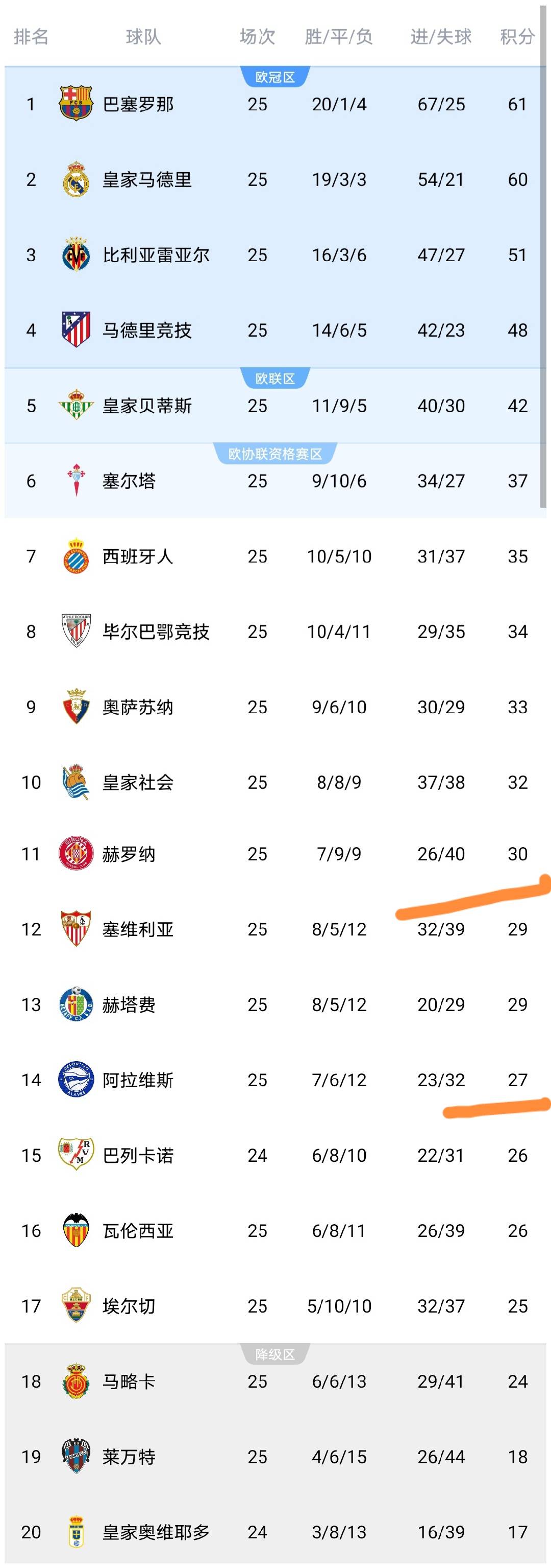 ในช่วงเช้าตรู่ของวันนี้ การแข่งขันนัดสุดท้ายของรอบที่ 25 ของลาลีกาได้สิ้นสุดลง โดยอลาเบสพบกับเกอโรนา หลังจากจบการแข่งขันนี้ ทุกทีมในลาลีกาได้ทำการแข่งขันครบทั้ง 25 นัดแล้ว ซึ่งส่งผลให้มีการเปลี่ยนแปลงในตารางคะแนนลีก มาดูกัน