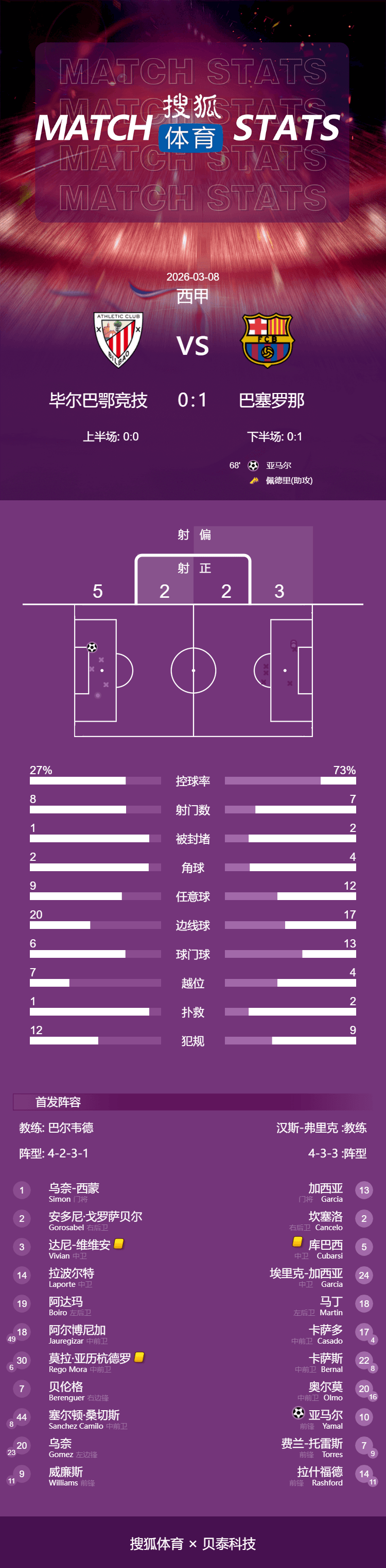 เมื่อเวลา 4:00 น. ของวันที่ 8 มีนาคม ตามเวลาปักกิ่ง ในรอบที่ 27 ของลาลีกา บาร์เซโลนาไปเล่นกับกรีฑาบิลเบา ในครึ่งแรกของเกมทั้งสองฝ่ายล้มเหลวในการเขียนคะแนนใหม่และทั้งสองทีมดึง 0-0 ในครึ่งหลัง Pedry ทำประตูได้และช่วยให้บาร์เซโลนาเป็นผู้นำ ในท้ายที่สุด บาร์เซโลน่า เอาชนะ บีบา 1-0 และยังคงนำเรอัล มาดริด 4 แต้มหลังตารางต่อไป
