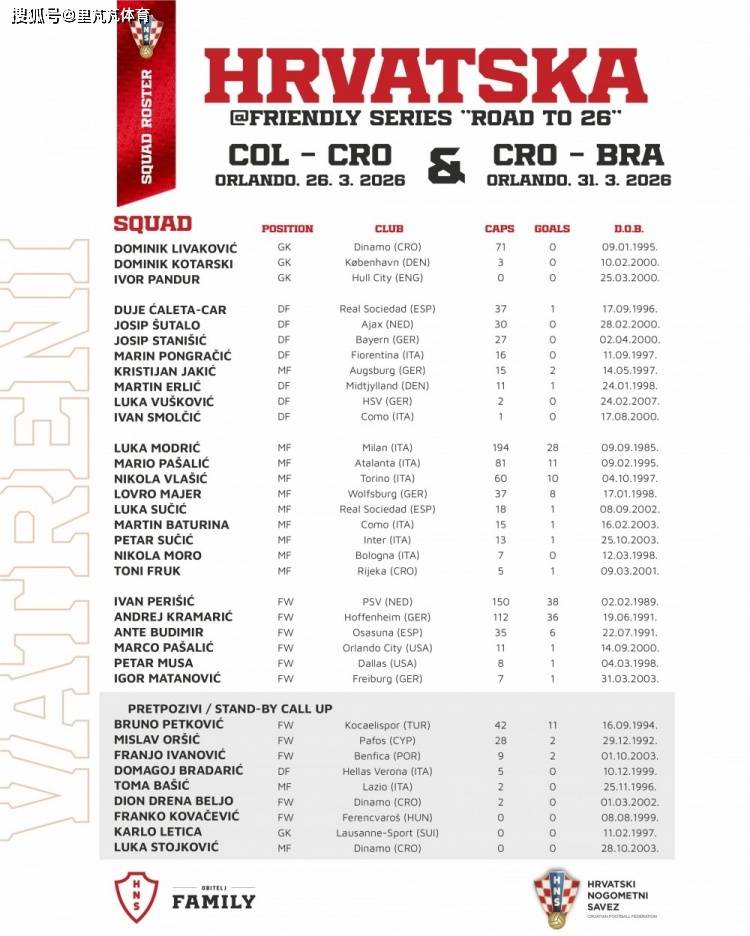 ทีมชาติโครเอเชียประกาศรายชื่อนัดกระชับมิตรเดือนมีนาคมซึ่งพวกเขาจะเล่นกับโคลอมเบียและบราซิลในนัดกระชับมิตร โมดริช ตำนานของเรอัล มาดริด นำทีม ซูซิก กองกลางอินเตอร์ มิลาน อยู่ในรายชื่อ Guvadioor และ Kovacic พลาดโอกาสในการฝึกซ้อมเนื่องจากได้รับบาดเจ็บ นี่จะเป็นโอกาสในการฝึกซ้อมครั้งสำคัญก่อนฟุตบอลโลก