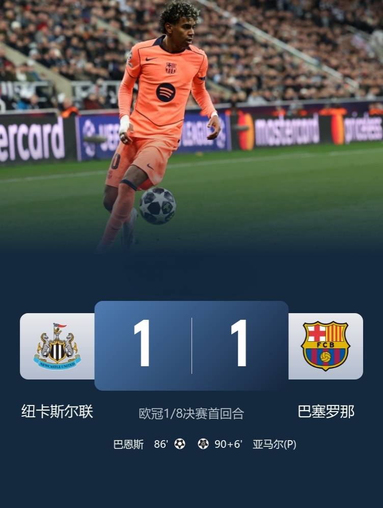 นิวคาสเซิ่ล 1-1 บาร์เซโลนา: นิวคาสเซิ่ลดึง 1-1 กับบาร์เซโลนาภายใต้สถานการณ์ของความได้เปรียบในบ้าน ออร์โมทำแต้ม ยามาลยิงประตู และบาร์นส์ทำประตูได้! หลังจากนิวคาสเซิ่ลพลาดโอกาสไปก็ยากที่จะกลับมาที่คัมป์ นู ลูกยิงนัดสุดท้ายของบาร์เซโลน่าก็เสมอกันและได้เปรียบจากการเลื่อนตำแหน่งไปแล้ว