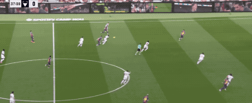 ในนาทีที่ 39 บาร์เซโลน่าโจมตีทางซ้ายและฉีกแนวรับอีกครั้ง หลังจากเบอร์นัลบุกทะลุ เขาจ่ายบอลและถูกบล็อก และบอลถูกหักเหไปที่กึ่งกลางของเขตโทษ อัลโมฉลาดและผลักดันเป้าหมาย บาร์เซโลน่า นำ 3-0 ดูเหมือนว่าจะมีการเล่น 3 นาทีที่บ้าน