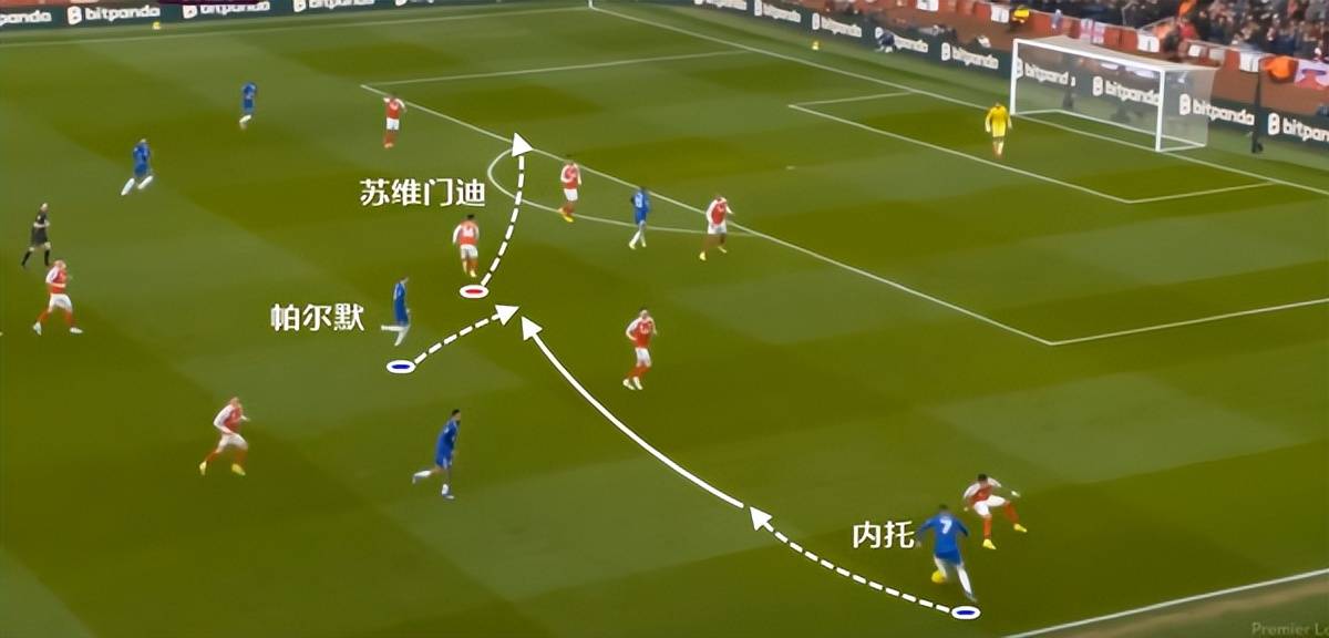 คราวนี้ก็จริงเหมือนกัน การโจมตีของเชลซีถูกยิงจากด้านข้าง และเปโดรก็ตอบโต้เพื่อตอบโต้ ส่งผลให้ซูเว่ย เมนดี้ ถอยออกมาอย่างรวดเร็ว ทำให้อาร์เซนอล เปิดโปงพื้นที่หน้ากรอบเขตโทษได้มาก