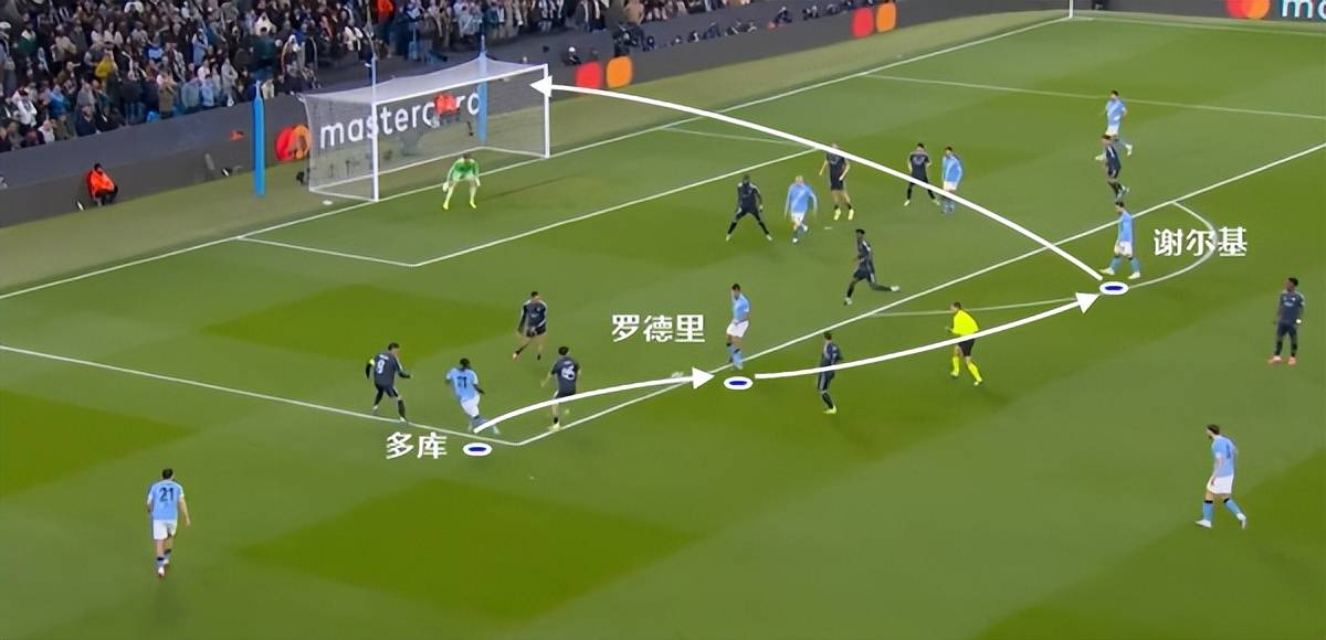 ความร่วมมือเชิงรุกแบบนี้ก็เป็นโหมดโปรดของกวาร์ดิโอล่าเช่นกัน การส่งบอลต่อเนื่อง + การเคลื่อนไหวของทีมในที่สุดก็ทำลายแนวรับของเรอัล มาดริด
