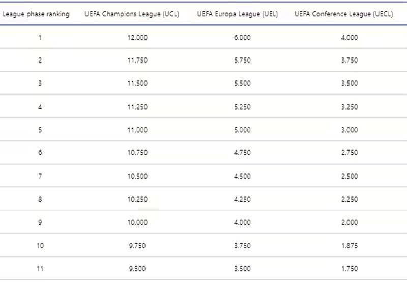 ในฤดูกาลนี้ เนื่องจากการปรับเปลี่ยนระบบสัมประสิทธิ์ของยูฟ่า คะแนนโบนัสการจัดอันดับที่มอบให้ในระหว่างรอบลีกได้เพิ่มขึ้น หากพรีเมียร์ลีกยังคงรักษาอันดับปัจจุบันและได้รับคะแนนโบนัสแชมเปียนส์ลีกเพิ่มเติมเป็นปีที่สองติดต่อกัน นี่จะเป็นข่าวดีสำหรับแมนเชสเตอร์ยูไนเต็ด เนื่องจากจะทำให้พวกเขาสามารถแข่งขันในแชมเปียนส์ลีกต่อไปได้ ซึ่งจะช่วยเพิ่มโอกาสในการผ่านเข้ารอบอย่างมีนัยสำคัญ ยังคงต้องติดตามว่าพรีเมียร์ลีกจะสามารถคว้าตำแหน่งในแปดอันดับแรกของแชมเปียนส์ลีกได้กี่ตำแหน่งในที่สุด