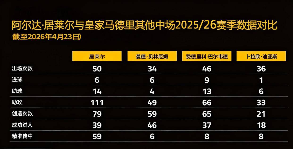 เมื่อเวลา 03.00 น. ของวันที่ 16 เมษายน 2026 ตามเวลาปักกิ่ง สกอร์ของสนามกีฬาอลิอันซ์ ได้รับการแก้ไขที่ 4-3 เรอัล มาดริด ถูกไล่ออกจากรอบรองชนะเลิศแชมเปี้ยนส์ลีก โดย บาเยิร์น มิวนิค ด้วยสกอร์รวม 4-6 เด็กชายตุรกีวัย 21 ปีล้อนอยเออร์ด้วยลูกเทนนิสใน 35 วินาที และในนาทีที่ 30 เขาใช้ฟรีคิกในโลกเพื่อปิดปากทั้งเยอรมนี ชื่อของเขาคือ Arda Gulair และในฤดูกาลนี้ทำให้เรอัล มาดริดทำ 14 แอสซิสต์สูงสุดในทีม ในทางกลับกัน Mbappe ซึ่งมีมูลค่า 200 ล้าน เพิ่งส่งบันทึกส่วนตัว 23 ประตูและ 4 แอสซิสต์ในลาลีกา แต่เขาสามารถนำทีมไปสู่สี่ฤดูกาลแรกที่ว่างเปล่าในรอบเกือบสิบปีเท่านั้น