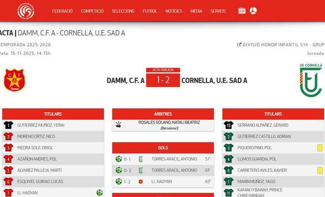 ด้วยการโหม่งในรอบที่เก้าครั้งนี้ หลี่ ฮ่าวหยาน วัย 13 ปี ได้ลงเล่นให้กับทีม U14 ของดามม์ในฤดูกาลนี้ไปแล้ว 8 นัด ยิงได้ 4 ประตู ปัจจุบันเขาอยู่ในอันดับที่ 10 ของตารางคะแนนผู้ทำประตูในลีกเกียรติยศ U14 ของแคว้นกาตาลุญญา และเป็นนักเตะที่ทำประตูสูงสุดของทีม โดยเป็นผู้เล่นเพียงคนเดียวที่ยิงได้ 4 ประตู เขาได้กลายเป็นผู้เล่นที่ขาดไม่ได้สำหรับทีมสเปนชุดนี้