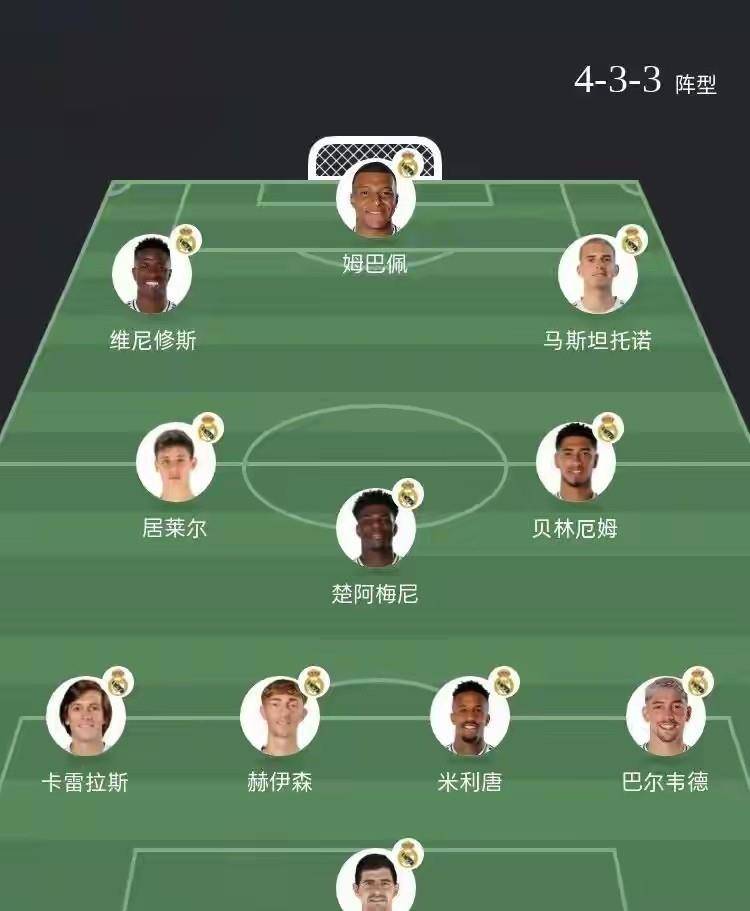 ด้วยการกลับมาของเบลลิงแฮม เขาจะร่วมสร้างคู่กลางสนามกับกิเยร์เม โดยกิเยร์เมจะเป็นผู้ควบคุมเกม และเบลลิงแฮมจะเน้นการวิ่งทำเกมรุก ขณะที่ชูอาเมนีจะคอยสนับสนุนเกมรับแนวรับคาดว่าจะมี คาร์เรราส, ไฮเซน, มิลิเตา และ บัลเบร์เด้ จากซ้ายไปขวา โดยมีผู้รักษาประตูที่ไว้ใจได้เสมออย่าง กูร์ตัวส์ ยืนเฝ้าเสา คาดว่าเรอัล มาดริดจะใช้ระบบ 4-3-3 แบบคลาสสิก