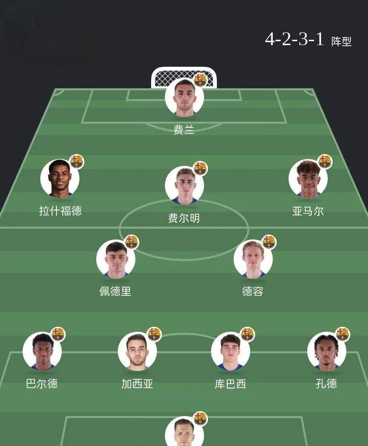 เกมรุกของบาร์เซโลนาจะขึ้นอยู่กับความสามารถของดาวรุ่งพรสวรรค์สูง ยาร์โมเลนโก้ ผู้ซึ่งการวิ่งทะลุทะลวงทางริมเส้นฝั่งขวาเป็นภัยคุกคามสำคัญ โดยเฉพาะในแมตช์ที่มีความกดดันสูงซึ่งเขาทำผลงานได้ยอดเยี่ยม แรชฟอร์ดทางฝั่งซ้ายและเฟร์รานในตำแหน่งกลางจะเป็นผู้ทำหน้าที่เชื่อมเกมและส่งบอลให้เพื่อนจบสกอร์อย่างเด็ดขาด