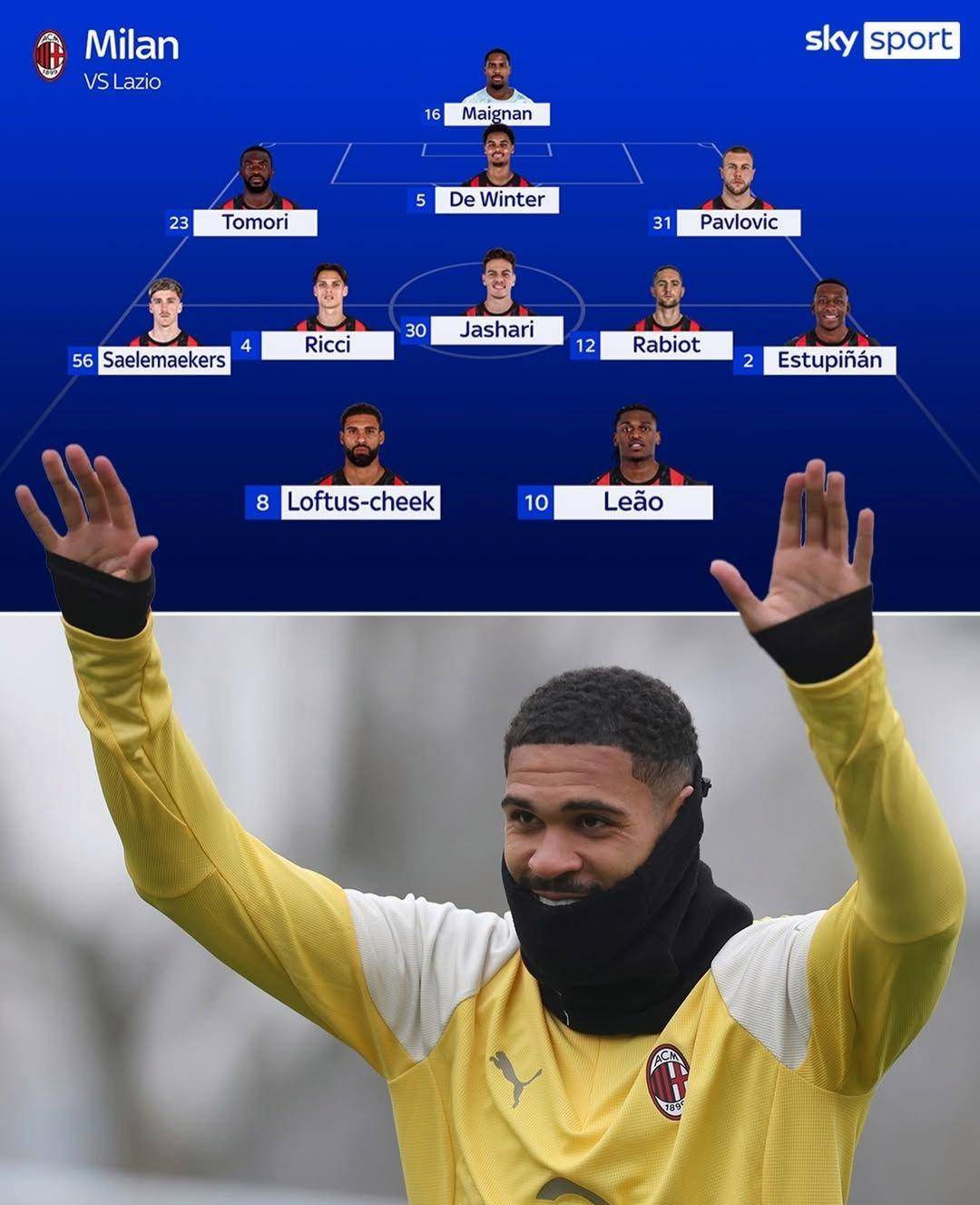 แม้ว่าจะฟื้นตัวจากอาการบาดเจ็บเป็นส่วนใหญ่แล้ว แต่ Pulisic น่าจะเริ่มต้นบนม้านั่งสำรอง โดยมี Loftus-Cheek จับคู่กับ Leão เป็นสองกองหน้าในแดนกลาง ลูก้า โมดริช ได้ลงเล่นเป็นตัวจริงติดต่อกัน 13 นัด ซึ่งเป็นภาระงานที่ไม่เคยเกิดขึ้นมาก่อนนับตั้งแต่ฤดูกาล 2021/22 กับเรอัล มาดริด และแน่นอนว่าเขาจะได้พักแน่นอน โฟฟาน่าที่มีอาการบาดเจ็บเล็กน้อยก็จะพลาดลงสนามเช่นกัน ริชชี่และราบิโอต์จะลงเล่นเป็นตัวจริงสองตำแหน่ง โดยมียาซีน ไอต์-บูลาอูเน่ นักเตะใหม่ที่ย้ายมาในช่วงซัมเมอร์มีแนวโน้มที่จะลงเล่นในตำแหน่งสุดท้าย