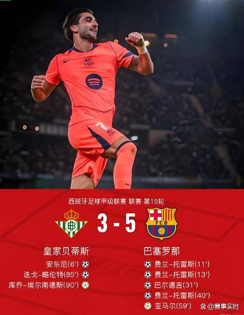 ในรอบที่ 15 ของลาลีกา บาร์เซโลนา ทีมจ่าฝูง และเรอัล เบติส ร่วมกันสร้างเกมการแข่งขันที่มีถึงแปดประตูในการแข่งขันนอกบ้าน บาร์เซโลนาสามารถเอาชนะไปได้ 5-3 ทำให้พวกเขาชนะติดต่อกันในลีกถึงหกนัด และยังคงครองตำแหน่งจ่าฝูงของตารางคะแนนอย่างเหนียวแน่นในค่ำคืนเดียวกันนั้น แอตเลติโก มาดริด ต้องพบกับความพ่ายแพ้อย่างเจ็บปวด 0-1 ที่สนามเหย้าของแอธเลติก บิลเบา โดยเสียประตูชัยในช่วงท้ายเกมจากการยิงไกลในนาทีที่ 85 ผลการแข่งขันนี้ทำให้พวกเขาแพ้ติดต่อกันเป็นนัดที่สอง
