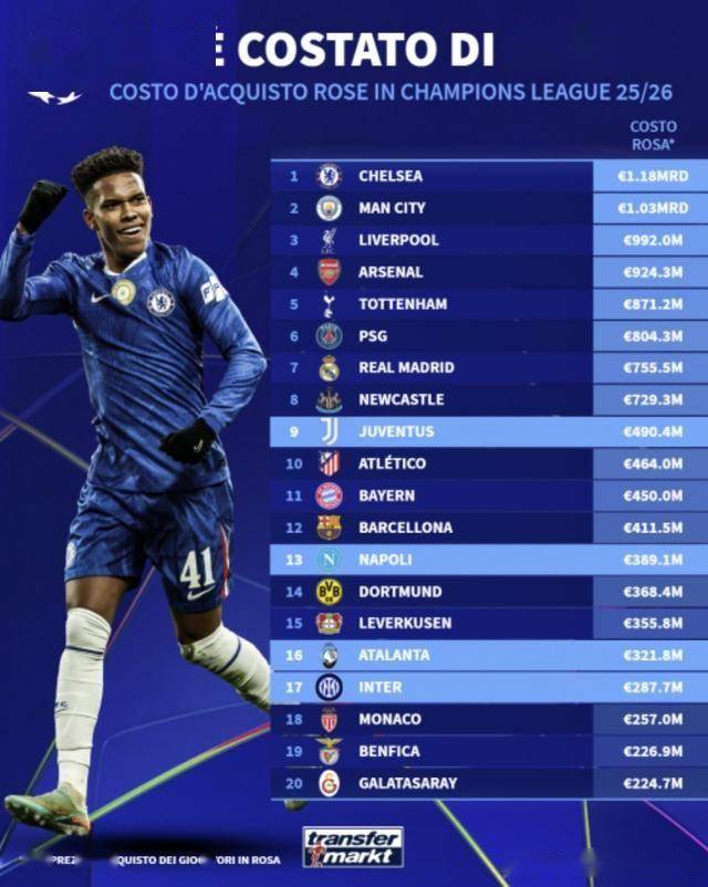 ดังนั้น จากการจัดอันดับจะเห็นได้อย่างชัดเจนว่าสโมสรอิตาลีกำลังถูกแซงหน้าหรือถูกทิ้งห่างโดยสโมสรคู่แข่งในด้านอำนาจการซื้ออย่างต่อเนื่องในทุกด้าน นี่คือเหตุผลที่ "เดอะ สเปเชียล วัน" กล่าวไว้ว่า: "มีเพียงผู้ที่ใช้เงินเท่านั้นที่สามารถคว้าแชมป์ได้"