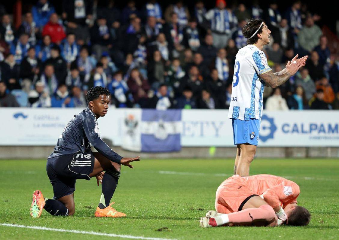 การโจมตีอย่างไม่ลดละของเรอัล มาดริด ได้ถึงจุดสูงสุดในนาทีที่ 41 เมื่อกองหลังทำแฮนด์บอลในเขตโทษ ทำให้ทีมเยือนได้จุดโทษ คีเลียน เอ็มบัปเป้ ยิงจุดโทษเข้าไปอย่างเยือกเย็น ทำให้ทีมของเขาขึ้นนำ 1-0 ก่อนหมดครึ่งแรก เอ็มบัปเป้เปิดบอลให้ฝ่ายตรงข้ามทำเข้าประตูตัวเอง ทำให้เรอัล มาดริดกลับเข้าสู่ห้องแต่งตัวด้วยสกอร์นำ 2 ประตู