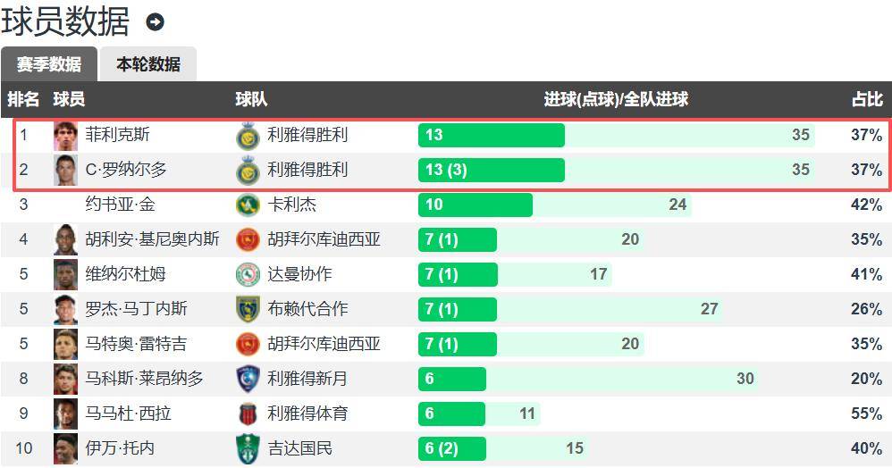 ในตารางคะแนนผู้ทำประตูสูงสุดของฤดูกาลปัจจุบันในซาอุดิ โปร ลีก เฟลิกซ์และคริสเตียโน โรนัลโดครองตำแหน่งผู้ทำประตูสูงสุดร่วมกันด้วยจำนวน 13 ประตูเท่ากัน นำหน้าผู้ตามอยู่สามประตู เฟลิกซ์ทำประตูได้ 13 ประตูโดยไม่รวมจุดโทษ ในขณะที่โรนัลโดทำประตูได้ 13 ประตูโดยรวมถึงจุดโทษสามครั้ง เนื่องจากเขาเป็นผู้รับหน้าที่ยิงจุดโทษของอัล นาสร์