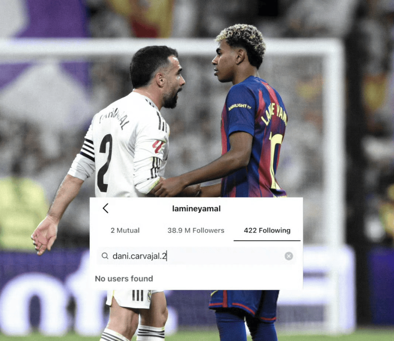 ยามาลได้เลิกติดตามคาร์บาฆาลบนโซเชียลมีเดียแล้ว แสดงให้เห็นถึงการเว้นระยะห่างจากกองหลังรายนี้ ขณะที่คาร์บาฆาลเองก็ไม่ได้ติดตามยามาลเช่นกัน ในฐานะกัปตันทีมชาติสเปนและหัวใจสำคัญในเกมรุกของทีมตามลำดับ ความขัดแย้งในระดับสโมสรของทั้งคู่ได้ส่งผลกระทบต่อความสามัคคีของทีมชาติ แล้วทั้งสองจะอยู่ร่วมกันในทีมต่อไปได้อย่างไร?
