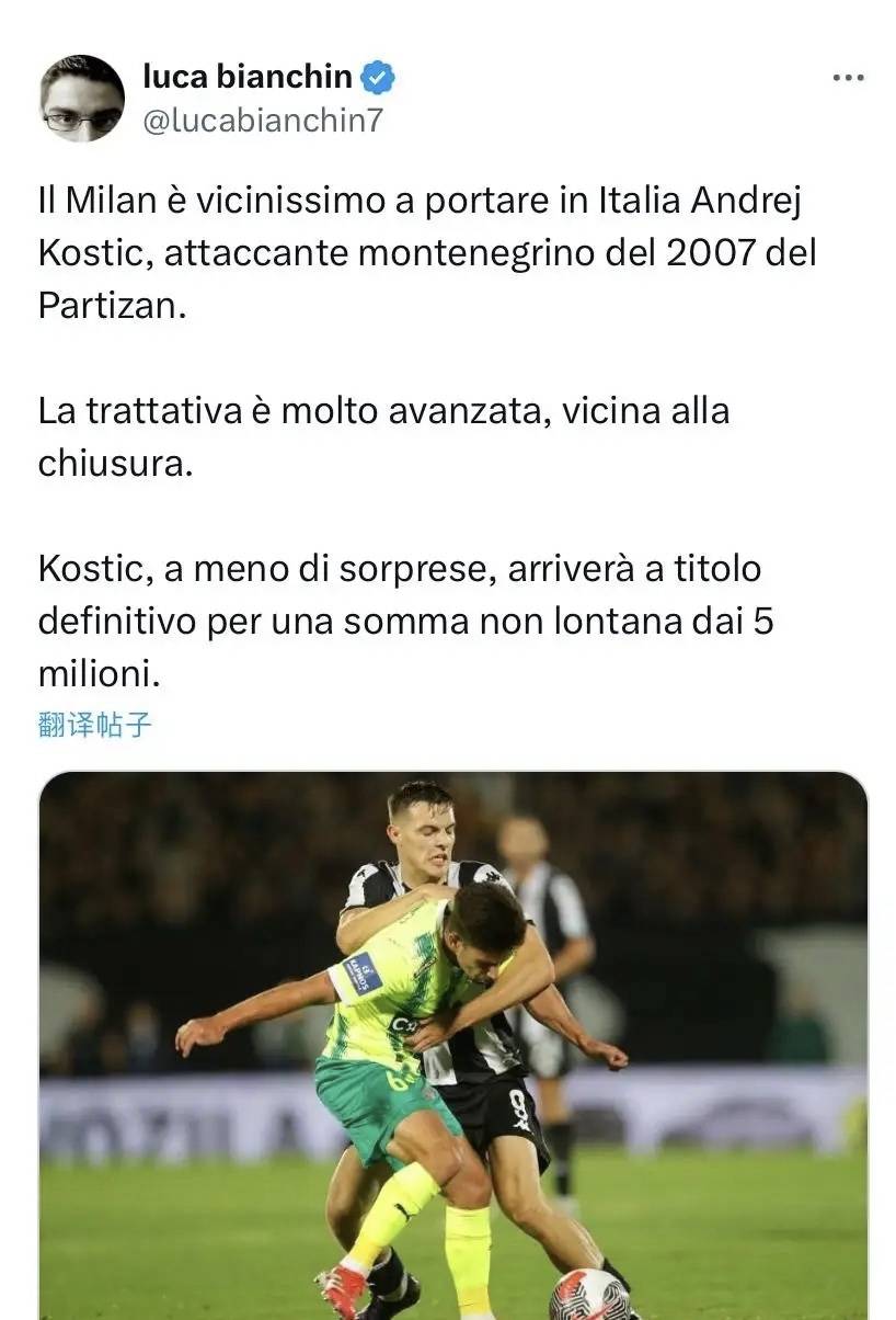 เซเรีย อา: การเซ็นสัญญาครั้งที่สองของมิลานในช่วงตลาดซื้อขายนักเตะฤดูหนาว! กองหน้าวัย 18 ปี คอสติช เข้าร่วมทีมเอซี มิลาน_ผู้เล่น_ทาเร่_ดาวรุ่ง