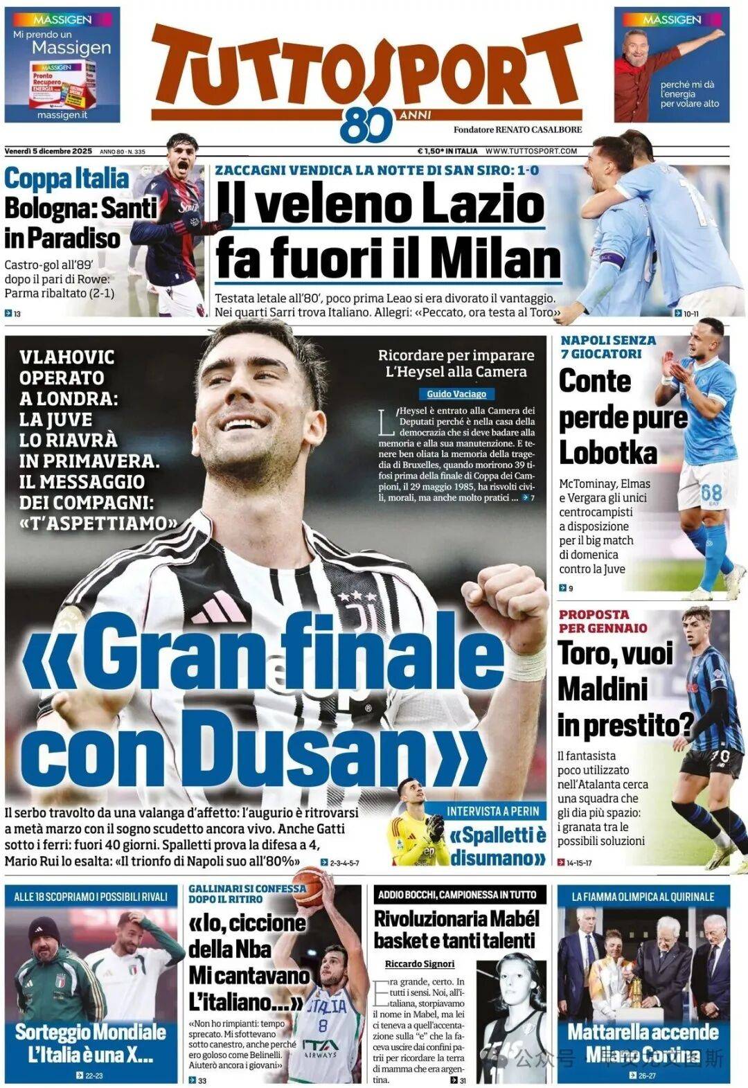 สรุปข่าวเซเรียอาประจำวัน: อัลเลกรีไม่พอใจกับการตกรอบของมิลาน ผู้รักษาประตูมือหนึ่งของอินเตอร์เตรียมอำลาทีม _การแข่งขัน_ ลาซิโอ พบ นาโปลี