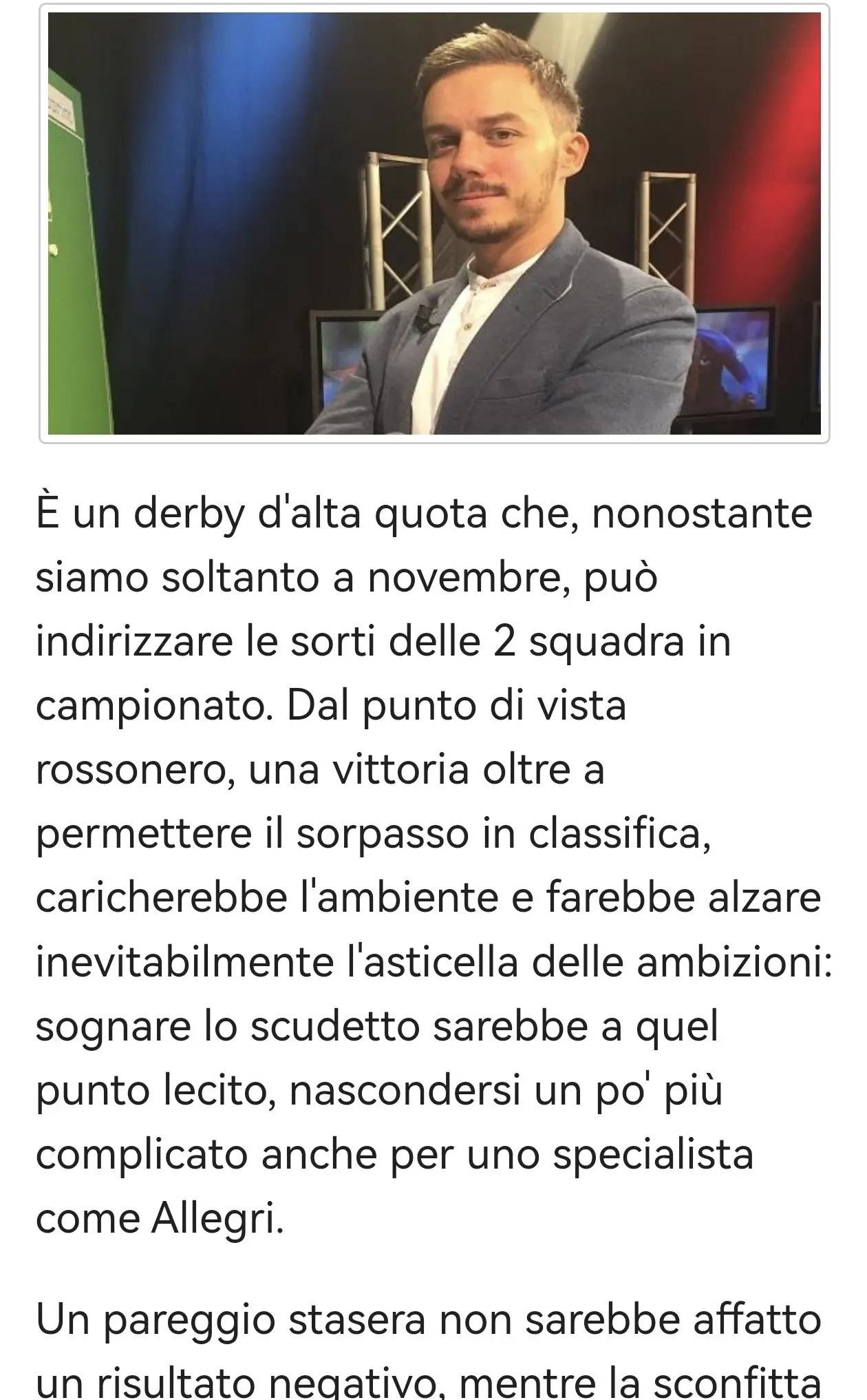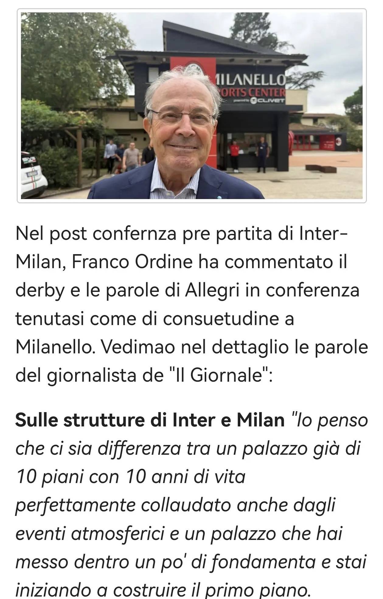 นักข่าวชื่อดังแห่งเซเรียอา: อินเตอร์คือตึกสิบชั้น ส่วนมิลานยังแค่กำลังวางรากฐาน; ทำนายว่าอินเตอร์จะชนะดาร์บี้ อัลเลกรีเสริมความแข็งแกร่งให้นาโปลี